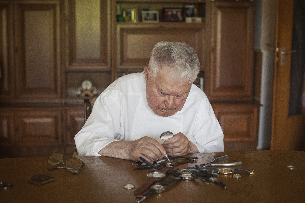 确认订单,技师拆解腕表、表壳和机芯,取出指针和表盘。